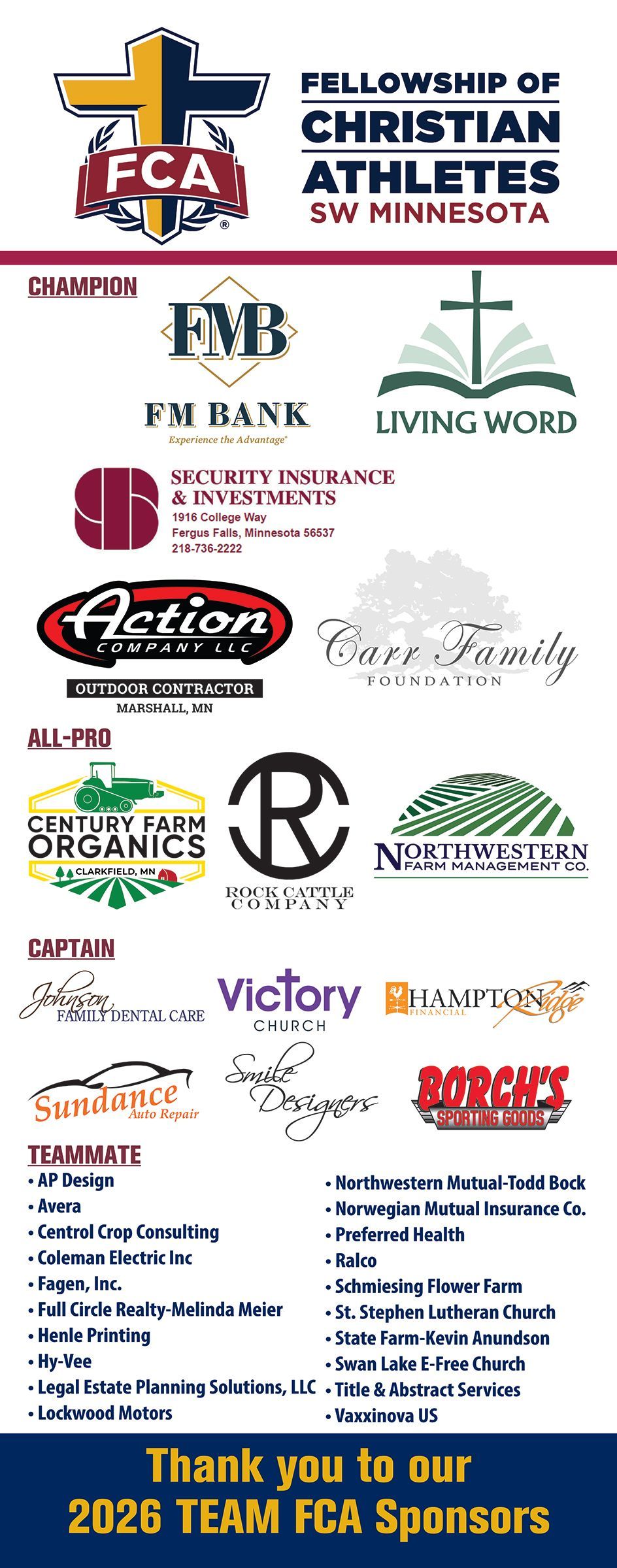 | Minneota Secondary | Multi-Sport | RKnudson@fca.org | RKnudson@fca.org |