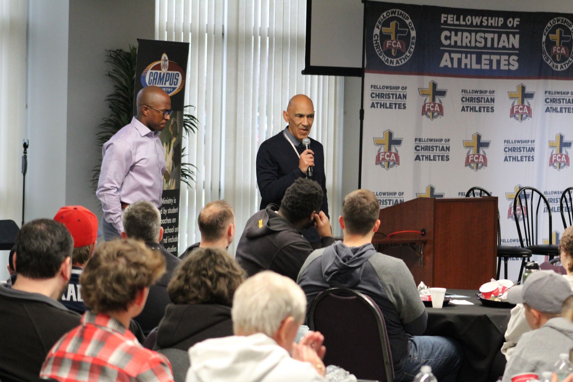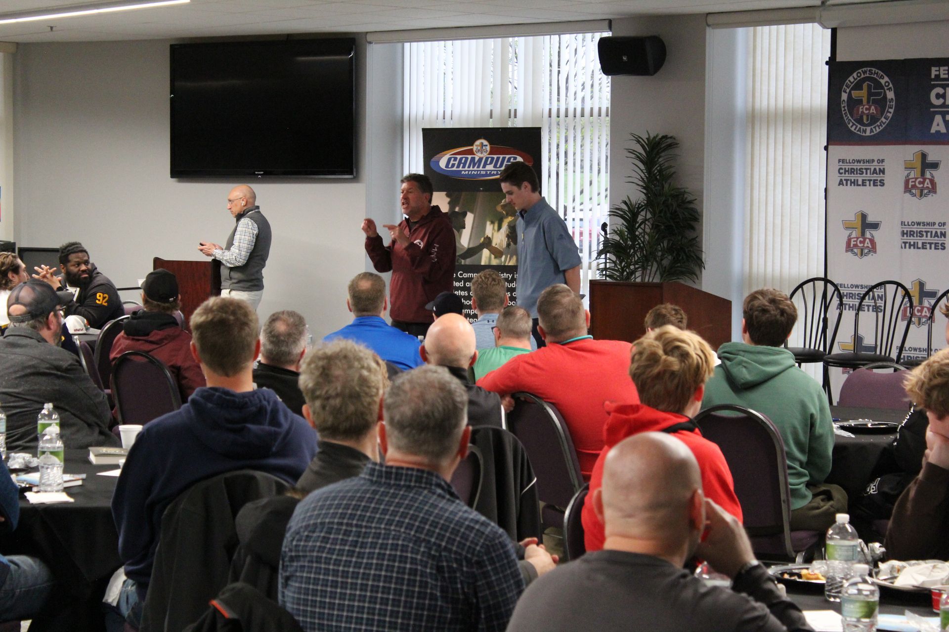Before the main event, Minnesota FCA hosted a breakfast and program for 175 coaches and their sons. Tony Dungy and Matthew Slater reminded coaches about the vital role they play in the lives of their athletes and encouraged them to continue coaching in a way that points their athletes to Jesus. Then FCA staff interviewed several local FCA coaches and athletes: